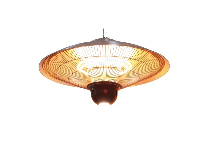 Pie griestiem piekarināms sildītājs ir piemērots lietošanai ārpus telpām uz māju terasēm, verandām, kā arī uz restorānu, kafejnīcu terasēm virs galdiņiem, bet arī iekštelpās. Sildītājam ir 3 dažādi jaudas līmeņi, kurus var regulēt ar tālvadības pulti. Siltuma avots izstaro siltu-baltu toni, kā arī integrētie LED apgaismes ķermeņi vienlaikus rada arī jauku, mājīgu apgaismojumu virs galda.