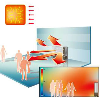 - Ātra un efektīva siltuma sadale, siltums tiek nodots objektiem, cilvēkiem;